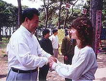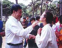 Group picture taken on the steps leading to Pang Lao-Shi's