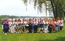 Another woman, Anne, with systemic lupus, also had little difficulty with the movements. Here is an example of a student with disease who did not give up! She said she'd been practicing about an hour a day for several weeks with much effort. Yet, she continued. I could see her improving daily throughout the week. Watching her and listening to her stories reminded me of the instructors at the Center in China repeatedly saying to us, "like Nike...just do it!" Anne was an example of that philosophy. She facilitated her healing by visualizing expanding beyond the blue sky to the universe and from there, expanding even further to touch a golden netting of light, then pulling it back within herself and letting it float back outward and once again pulling it inward, over and over and over. Occasionally, she visualized Pang Lao-Shi, larger than life, gently pulling her arms, and pulling chi from her toward him. She also saw millions of arms supporting her lovingly, helping her to expand and push and pull with her, all the arms of the Chi-Lel practitioners from around the world. Thus, she never felt alone or unaided. Anne also mentioned reading the stories from 101 Miracles daily for support, insight, and motivation. So although I was still struggling, I was struggling less. Because everyone was openly sharing their experiences, I could incorporate bits and pieces of their visualizations into my own. There were a handful of students at the retreat with no previous experience with Chi-Lel . Watching them struggle and achieve was exceptionally motivational for all of us. They were doing more than anyone could possibly imagine! The last day of the retreat, one of the students, Nancy, was able to complete the one-hour "Lift Chi Up," including the fifty shoulder rolls, effortlessly! After days of frustration and struggle, what a personal breakthrough! Luke and Frank kept challenging us to go beyond our limits and we succeeded--often through the examples of others. I too overcame my own weakness and reached beyond my self-limitations to a higher level of acceptance. It was an unbelievably rewarding experience! What did I learn from the extended retreat? Every single individual has the capacity to expand beyond his or her self-limitations to facilitate natural healing. How do we get there? We learned three important facts:
