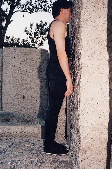 ![]() Figure 2 Going Down: Place your nose, forehead and feet close to a wall. Relax your entire body. |